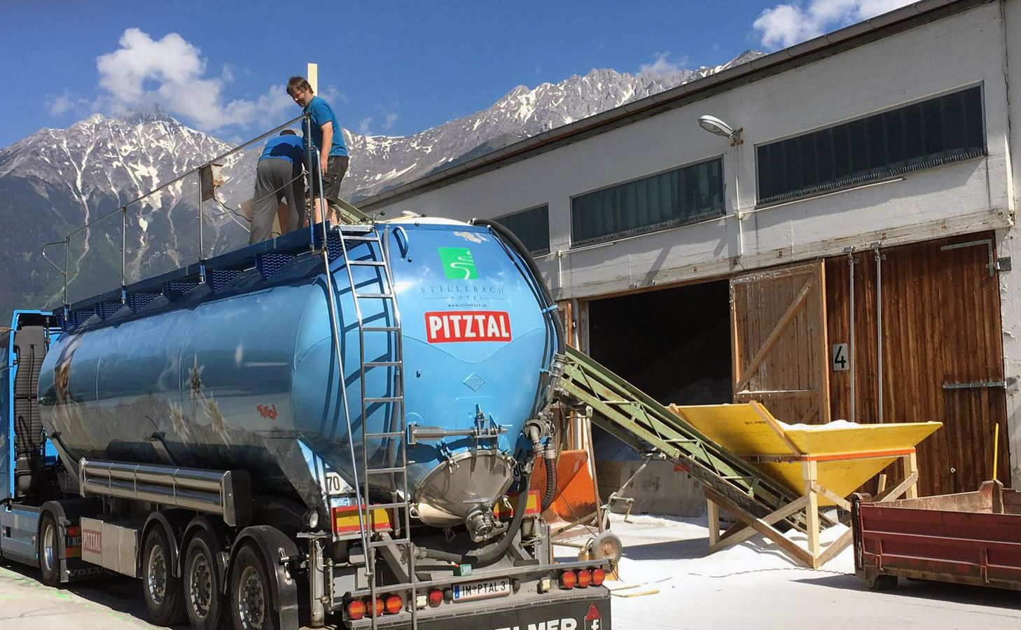 Nicht nur die Mitarbeiter der Straßenmeistereien sind im Winter oft im Dauereinsatz. Seit vielen Jahren beliefert Silo Melmer das Land Tirol mit Streusalz und sorgt für regelmäßigen Salznachschub. Die Silo Melmer-Fahrer sind im Winter oft auch bei schwierigen Straßenverhältnissen unterwegs, um die Versorgung der Streugutsilos sicherzustellen.
