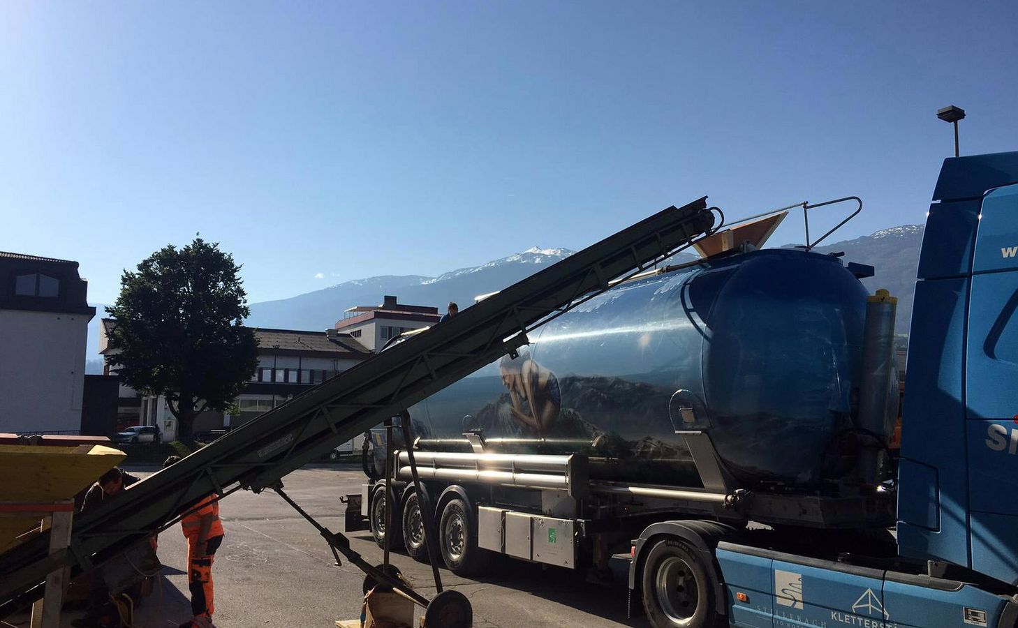 Dank des vollen Einsatzes der Firma Silo Melmer und deren individuell entwickelter Beladelösung, konnten wir in kurzer Zeit gut die Hälfte des Streuguts umlagern und Platz für den nächsten Wintervorrat schaffen. Die Abwicklung des Auftrags verlief für das Land Tirol zur vollsten Zufriedenheit! (Land Tirol)