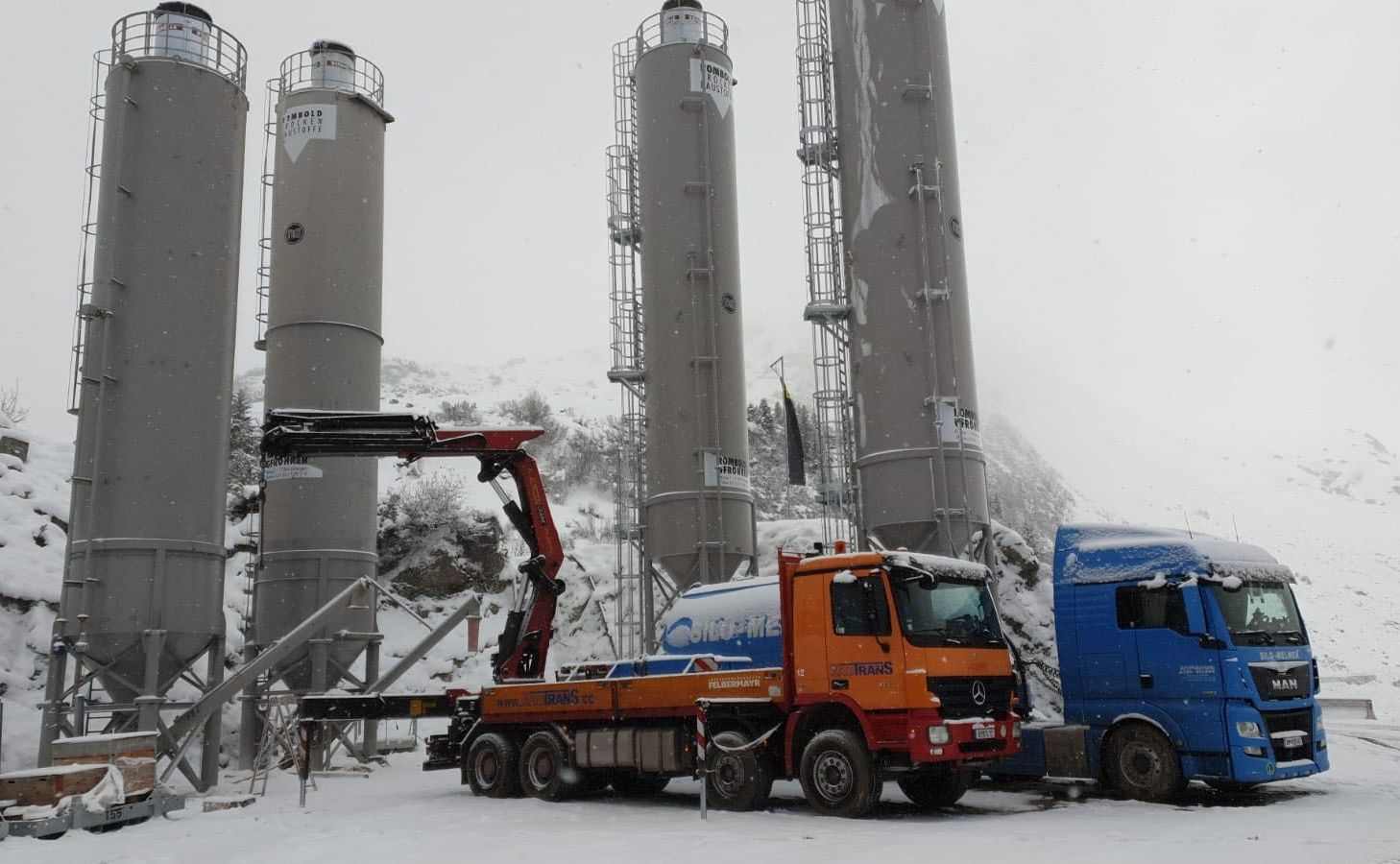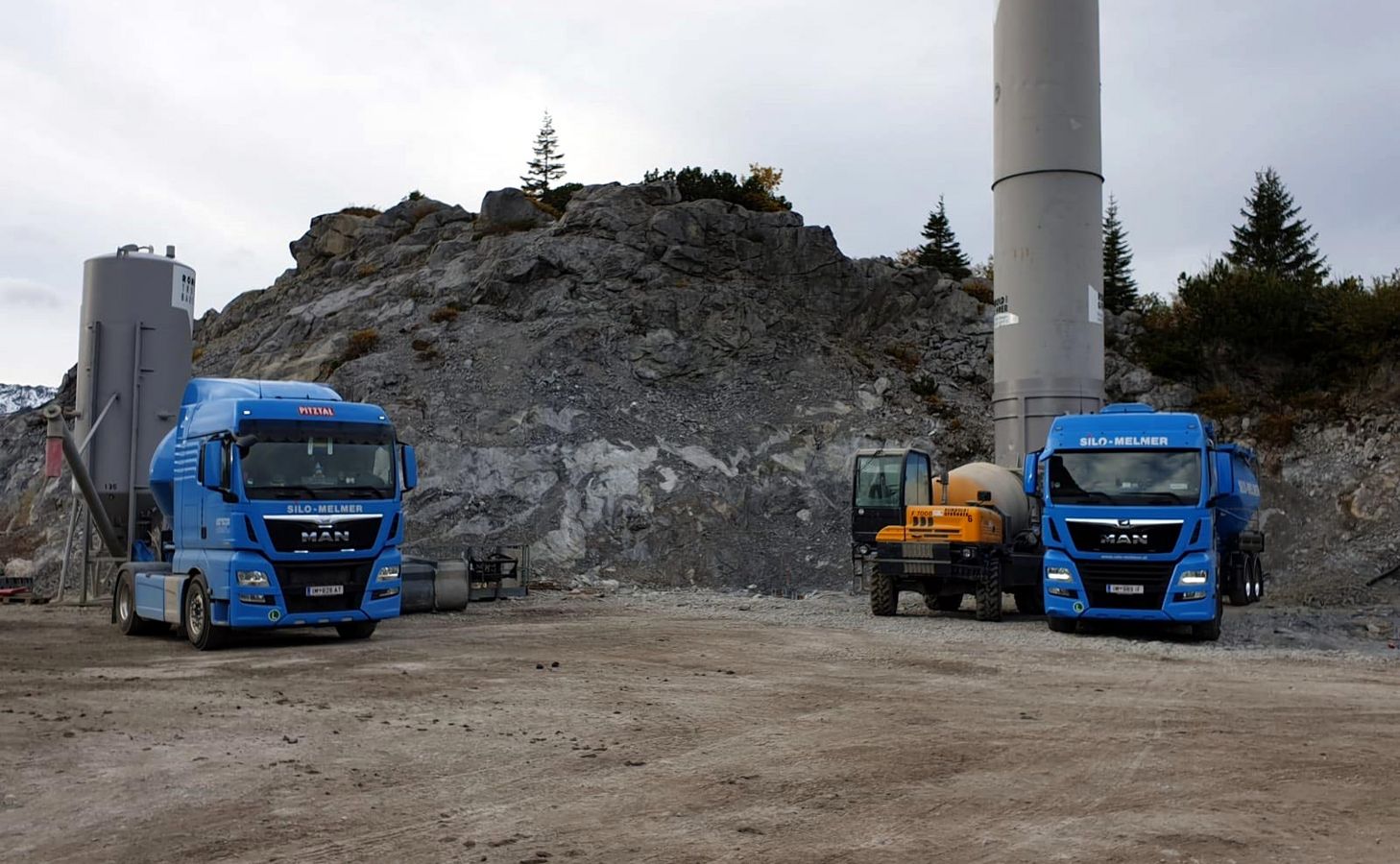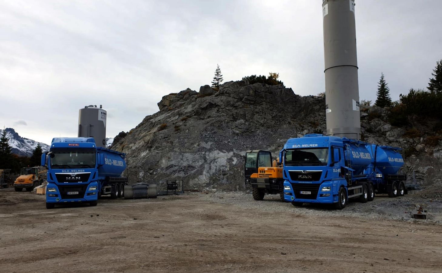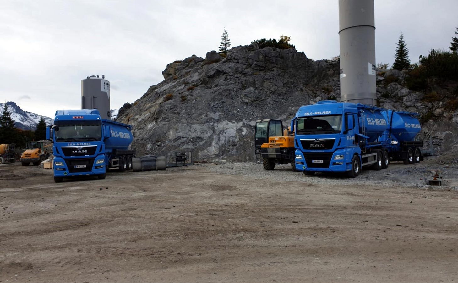 Die Aufgabe von Silo Melmer war es, bis zum Winterbeginn genügend Spritzbeton auf die Höhenbaustelle zu liefern, damit die Arbeiten ohne Unterbrechung auch in jener Zeit fortgesetzt werden können, in der die Zufahrtsstraße wegen Schnee nicht befahrbar ist. Über einen Zeitraum von knapp sechs Monaten brachte Silo Melmer 2.500 Tonnen Spritzbeton auf die Baustelle. Rund 100 Mal bewältigten die Melmer-Piloten dabei die anspruchsvolle Hochgebirgsstrecke durch das Zuger Tal bei Lech bis zum Spullersee. Besonders im Herbst stellten die Witterungsbedingungen eine Herausforderung dar. “Wir haben zunächst noch Liegend-Silos eingesetzt, schwierigeren Straßenverhältnissen kamen dann die beweglicheren Hängerzüge zum Einsatz”, erklärt Erwin Melmer, Fuhrparkleiter bei Silo Melmer. Stolz auf seine Mannschaft ist auch Firmenchef Simon Melmer. “Mit dem Projekt Spullersee haben wir wieder einmal gezeigt, dass wir gerade bei Großprojekten der optimale Logistikpartner sind. Unser großer Fuhrpark an eigenen Fahrzeugen lässt uns immer genügend Reserven, um alle Lieferversprechen einzuhalten.”